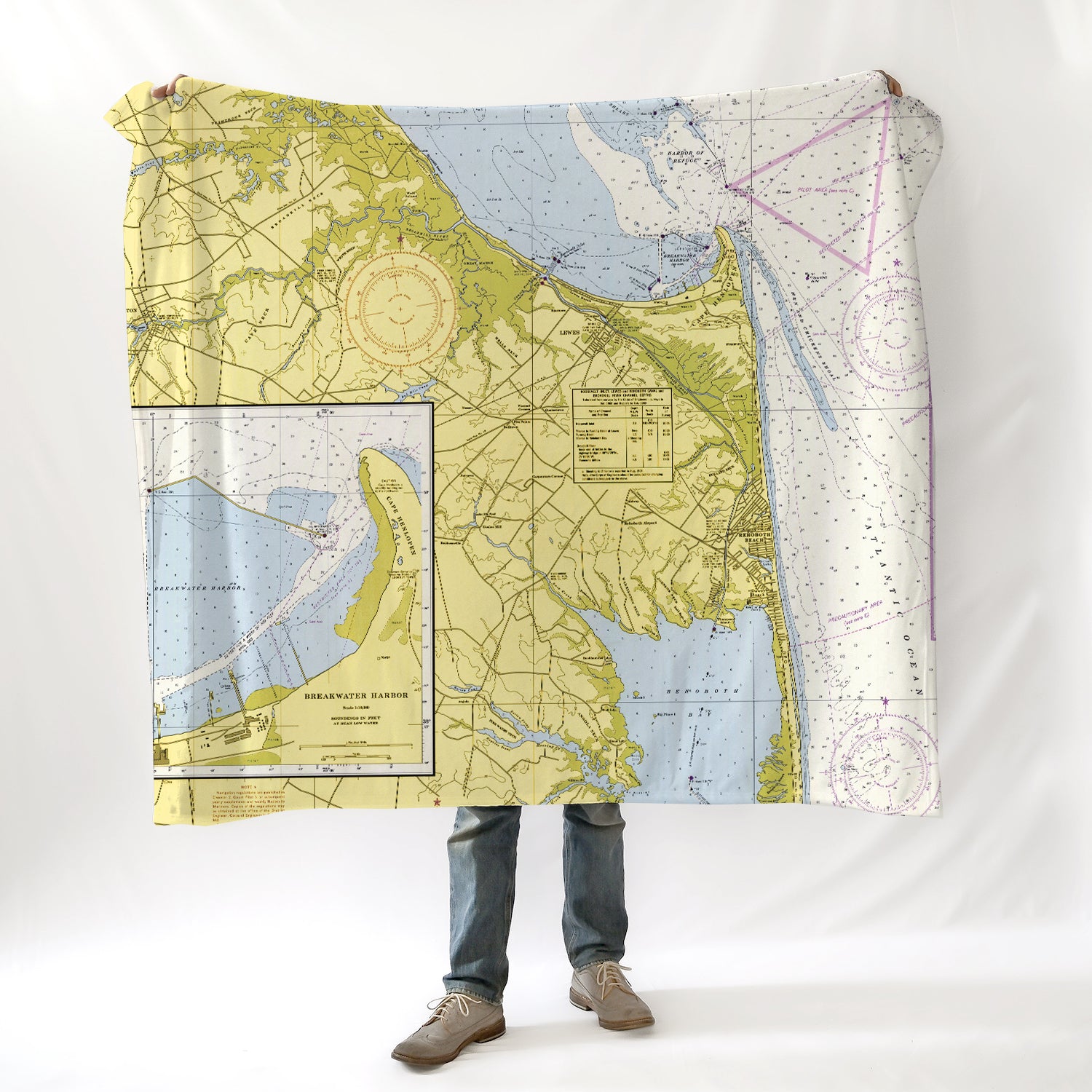 Cape Henlopen to Indian River Inlet Vintage Nautical Chart Blanket
