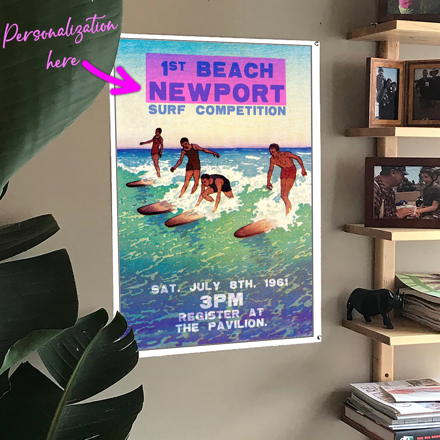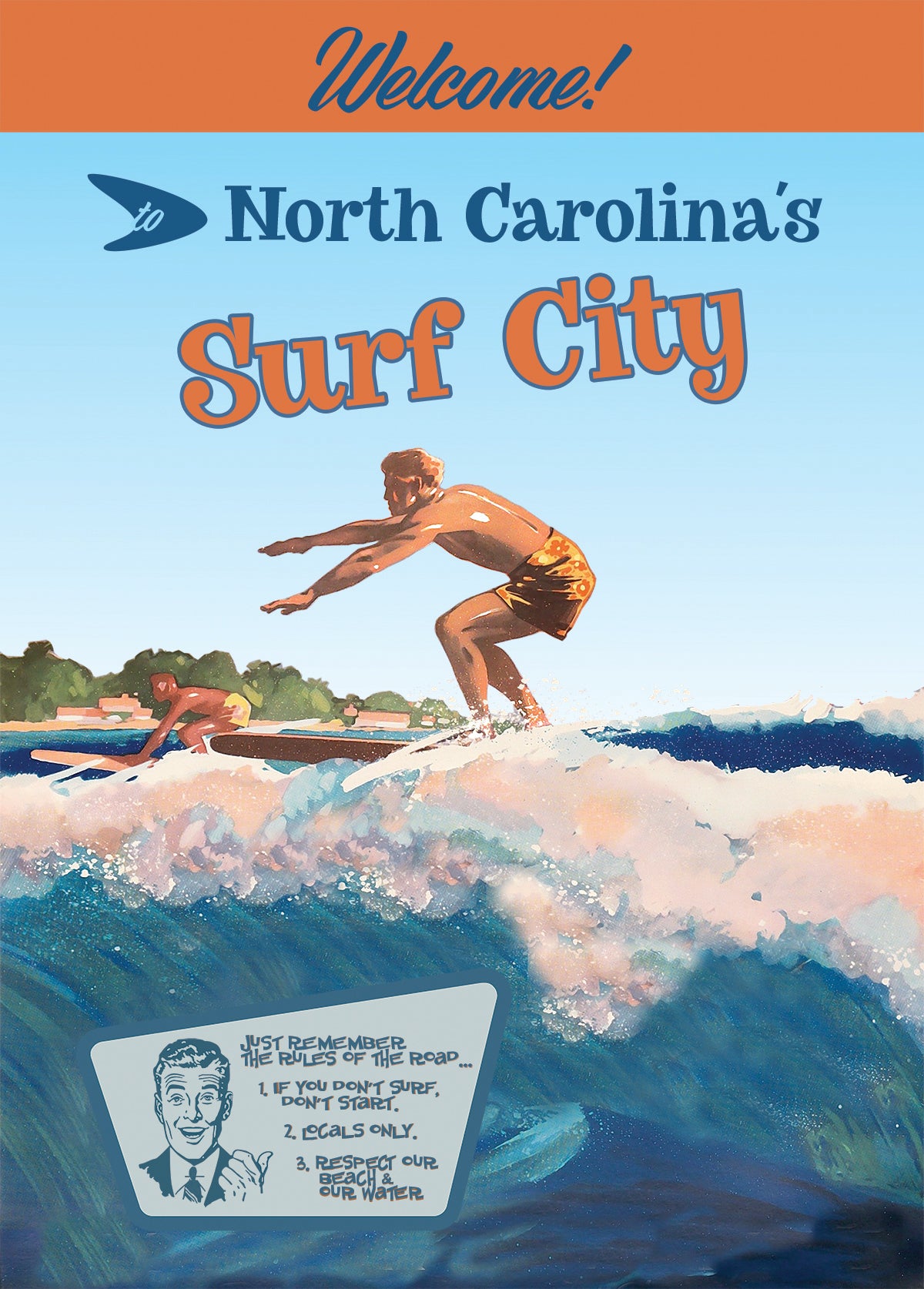 Vintage Surf Poster - 22" x 28" - Customized to your town
