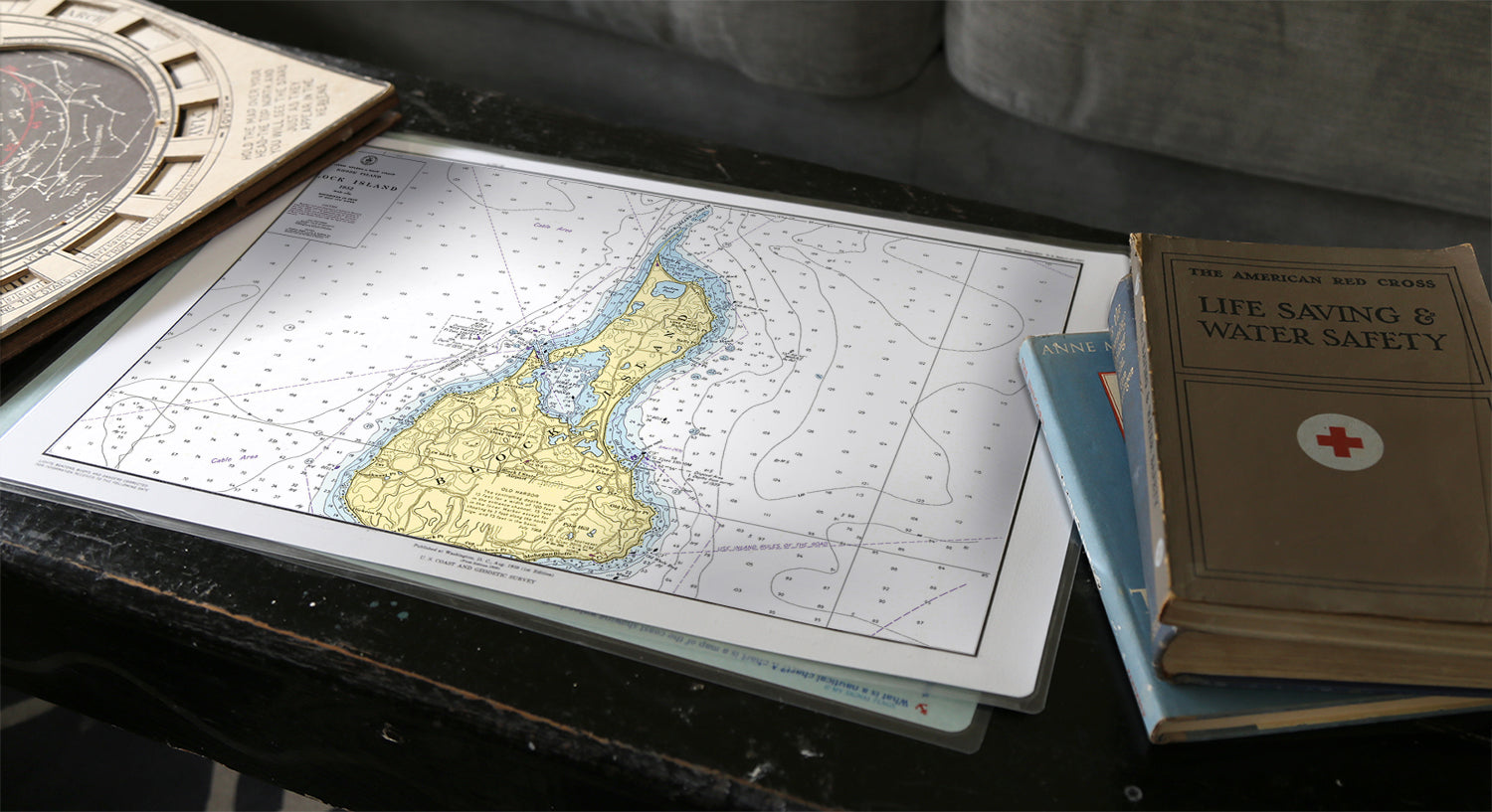 Our laminated map placemat brings chart-room style to everyday meals. Each one is printed with authentic charts and sealed with 7ml lamination to help resist spills and smudges. Make a four-pack (or more) from your favorite cruising spots like Martha’s Vineyard, Cape Cod, Nantucket, and Newport.