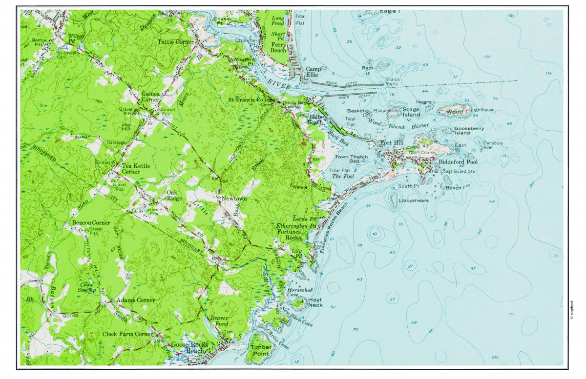 Biddeford Pool, Maine Topo Map Single Placemat