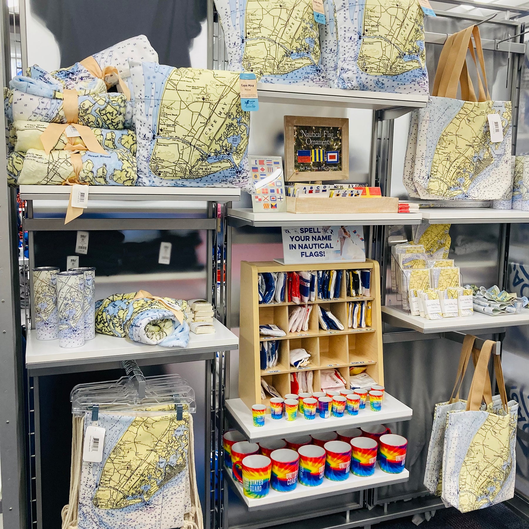 Well made chart bags, blankets, pillows and travel mugs are all on available at the Coast Guard Exchange, Cape May.