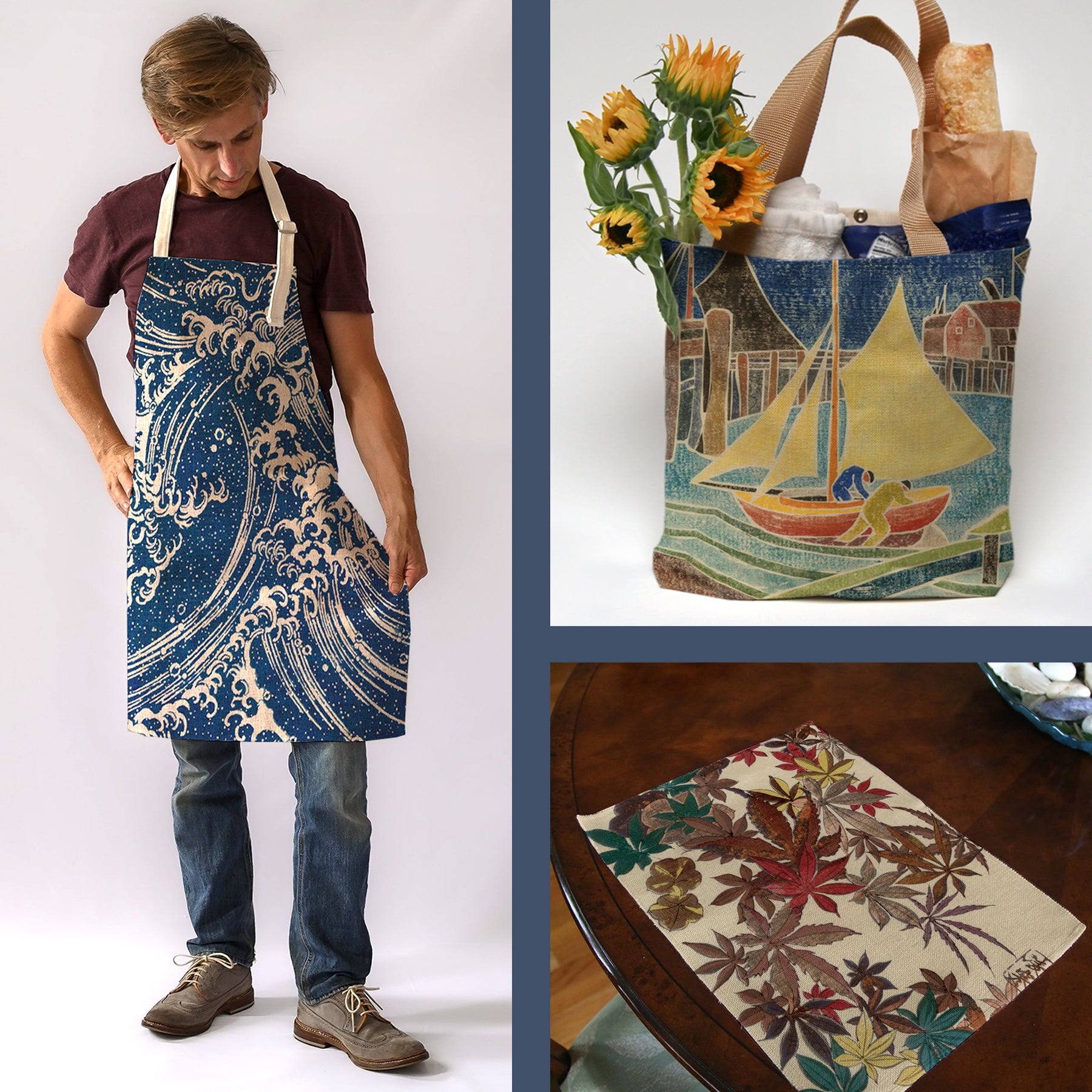 Aprons, tote bags and canvas placemats are all impeccably reproduced for the MFA's very discerning clientele. We have full print / cut / sew capabilities at our factory here in Fall River, Massachusetts, birthplace of American textile manufacturing.