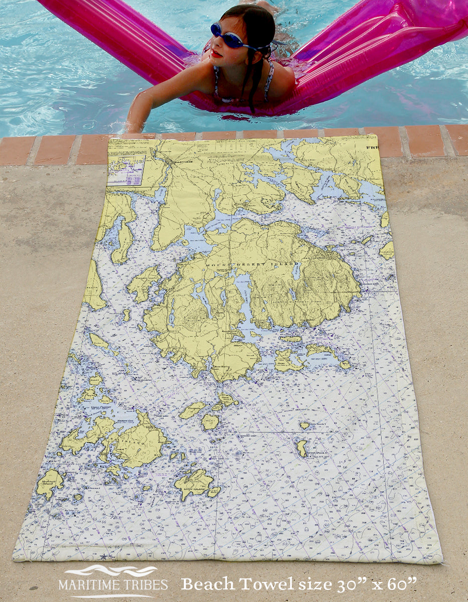 Acadia National Park, ME- MDI Nautical Chart Quick Dry Towel