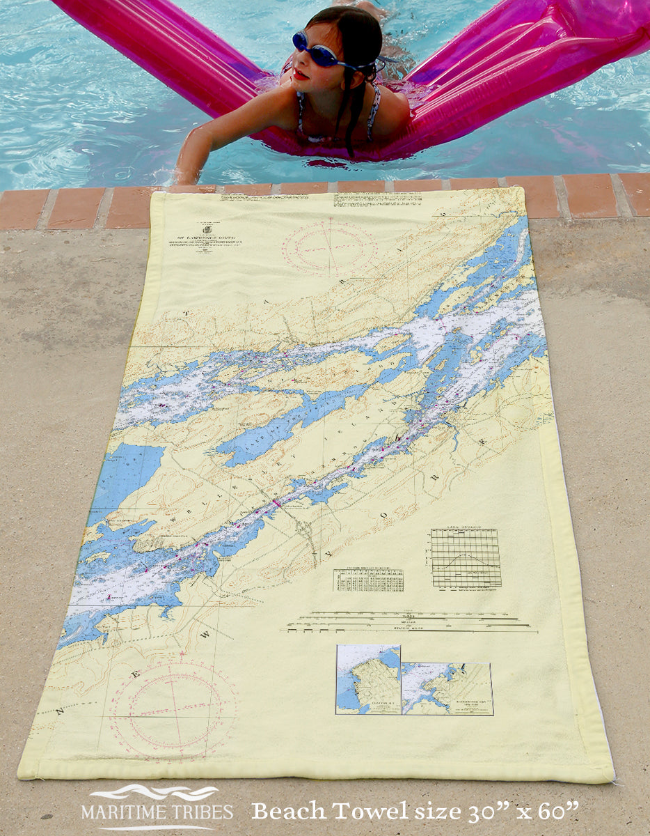 Alexandria Bay, NY - Nautical Chart Quick Dry Towel