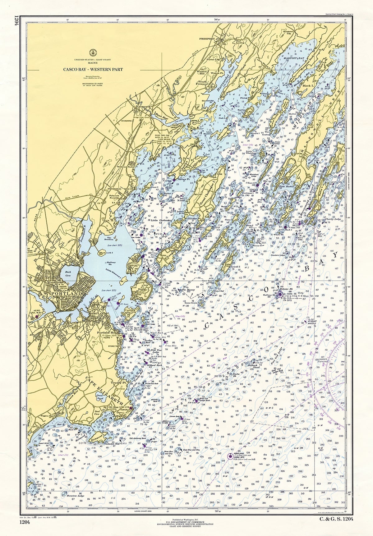 Casco Bay w/ Chebeague Island, ME Nautical Chart Scroll