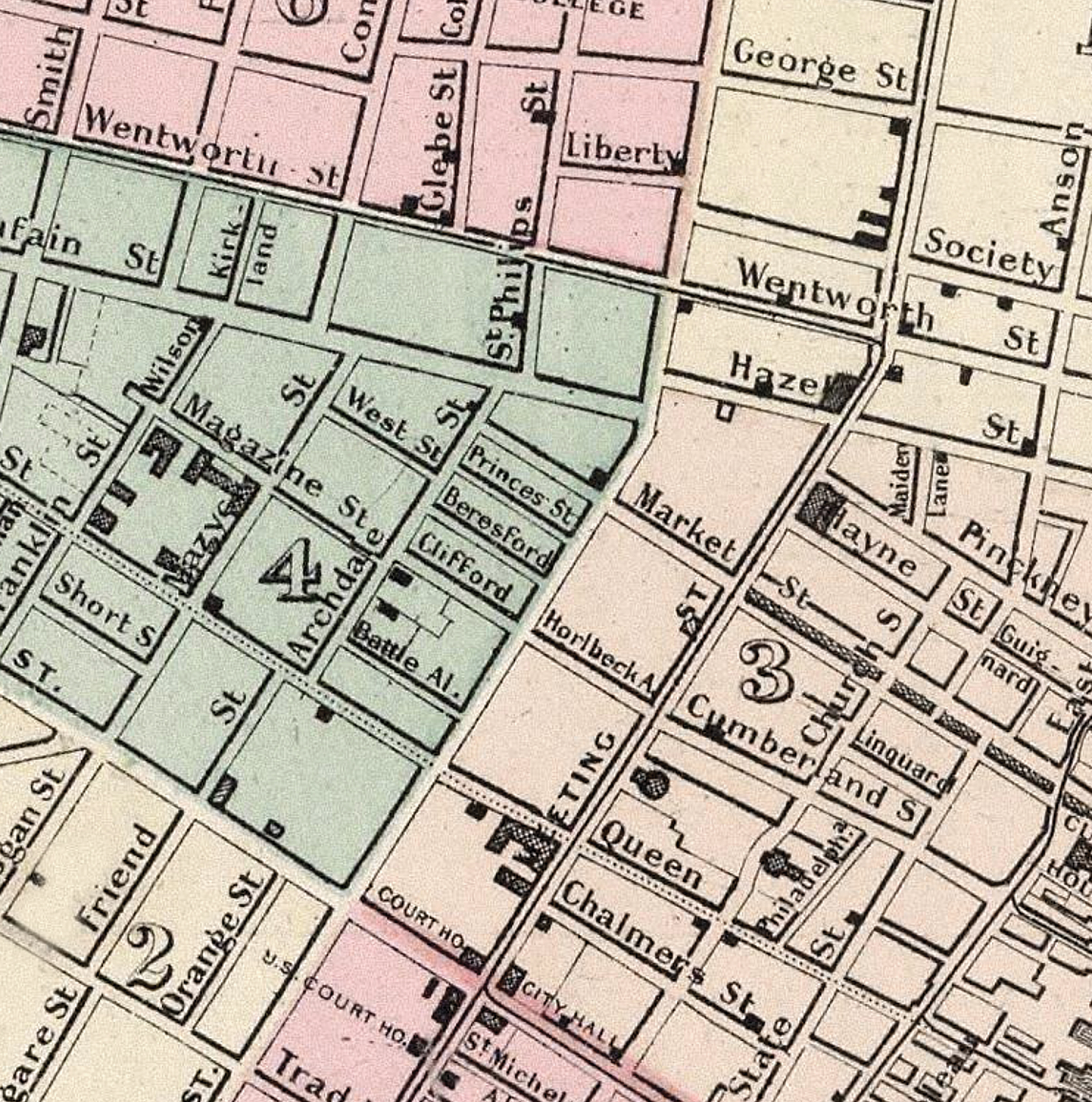 • Authentic reproduction of an 1886 Charleston city map