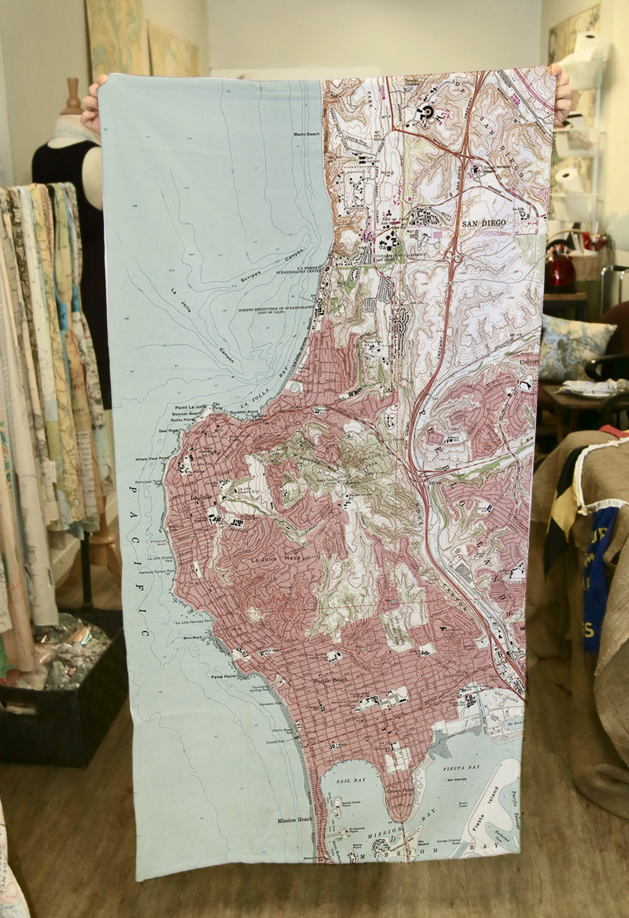 30” x 60” Beach Towel. Side A is fleece, Side B is Cotton terry