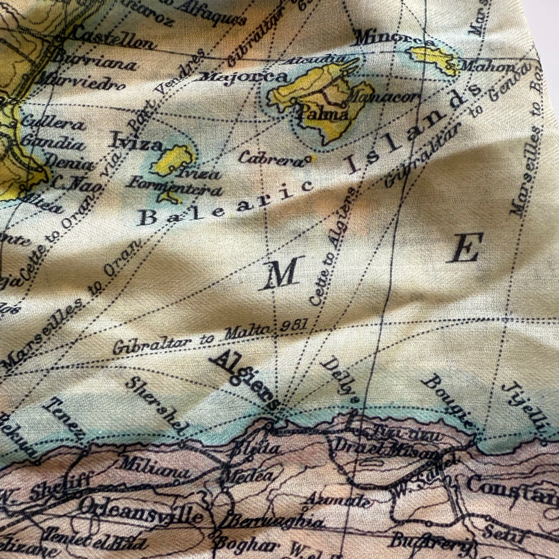 Steeped in history and legend, the Mediterranean Sea Vintage Map Scarf brings one of the world’s most storied waterways to life through classic cartography. This richly detailed vintage map captures the Mediterranean as a crossroads of civilizations—linking Southern Europe, North Africa, and the Near East through centuries of trade, exploration, and culture.