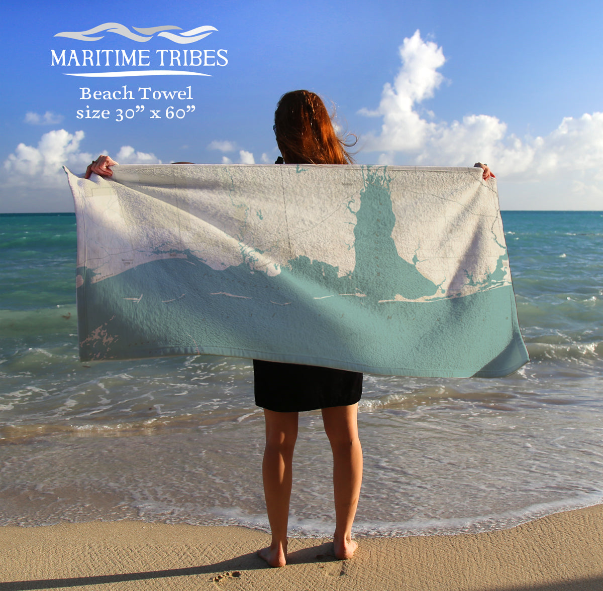 30” x 60” Beach Towel. Side A is fleece, Side B is Cotton terry