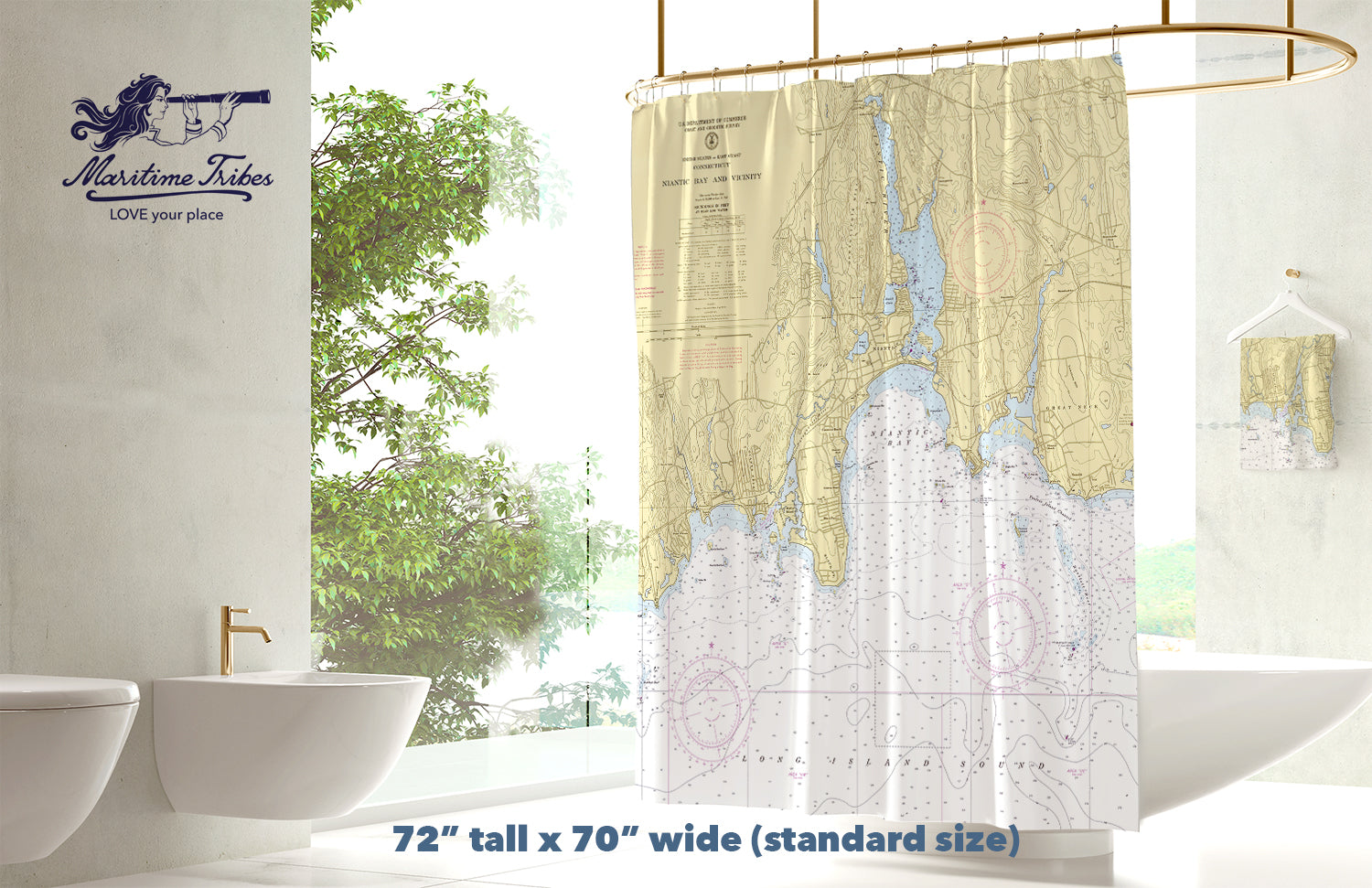 Transform your bathroom into a coastal retreat with our Niantic River, CT Nautical Chart Shower Curtain. Featuring a beautifully detailed chart of the Niantic River and surrounding Connecticut shoreline, this piece brings classic New England charm to your daily routine.