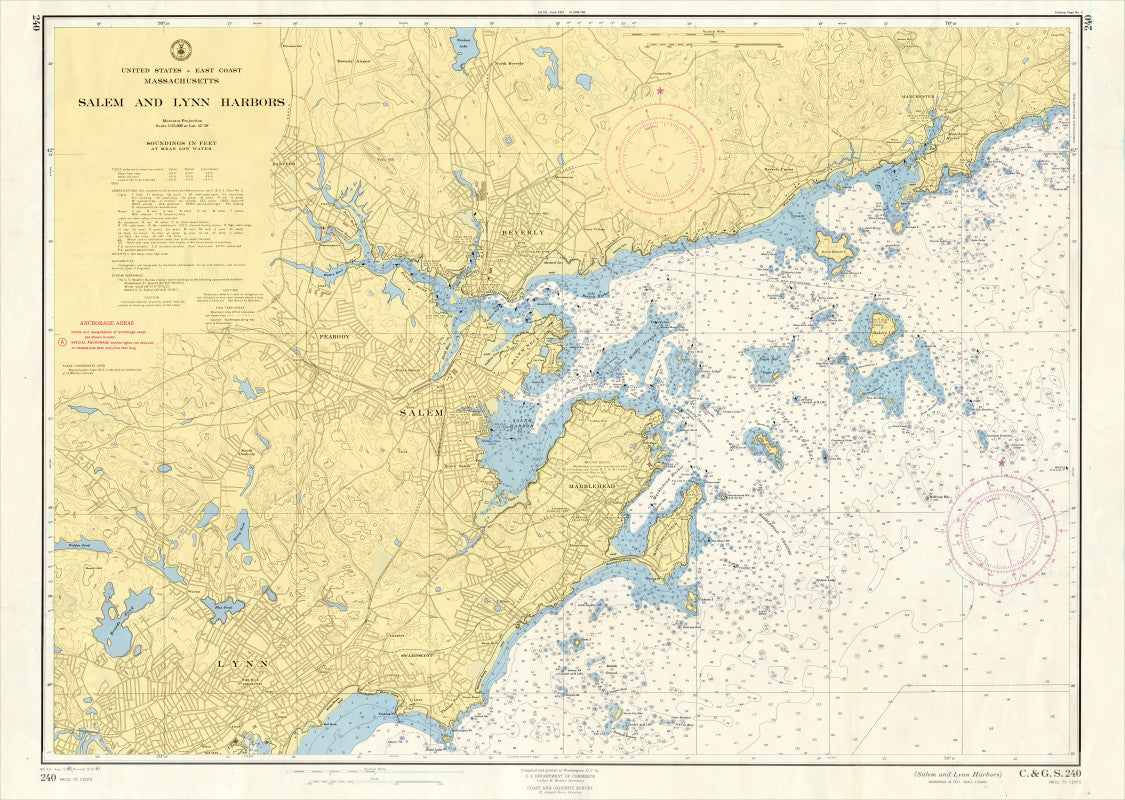Salem, Marblehead and Lynn Harbors Nautical Chart Scroll