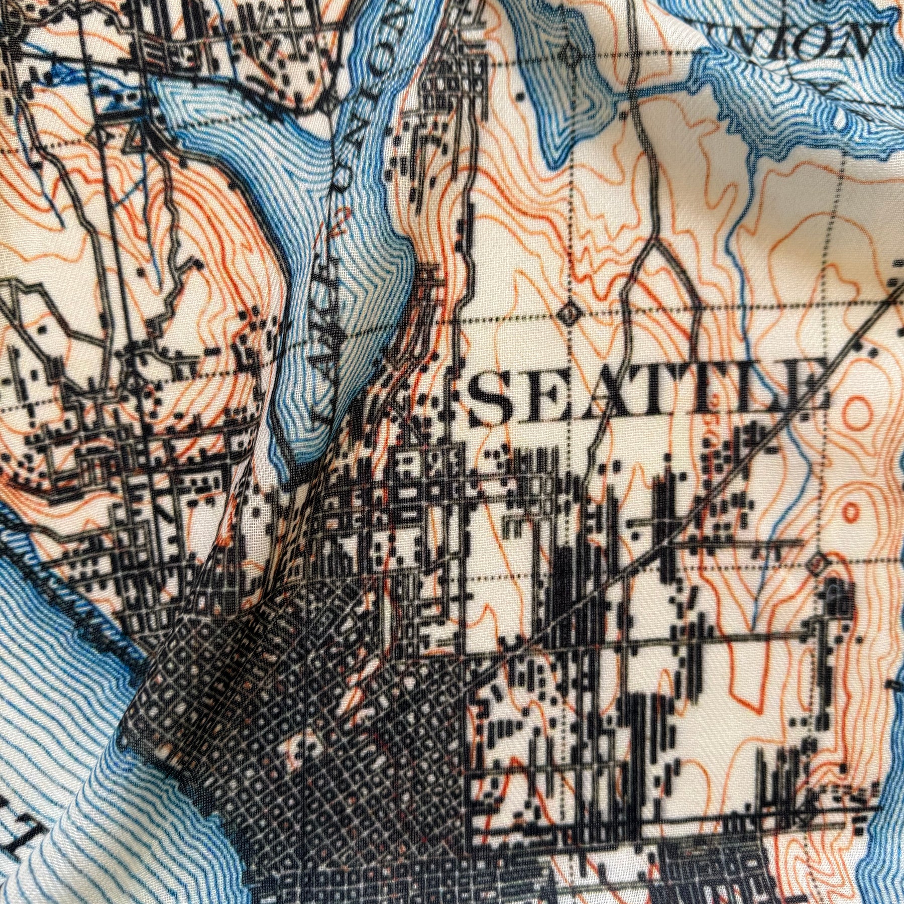 Celebrate the natural beauty and maritime charm of Seattle with our Puget Sound vintage map scarf, a thoughtful and elegant wedding gift, honeymoon gift, or anniversary travel gift. This scarf features a beautifully detailed map of Puget Sound, highlighting iconic locations of the lower bay.